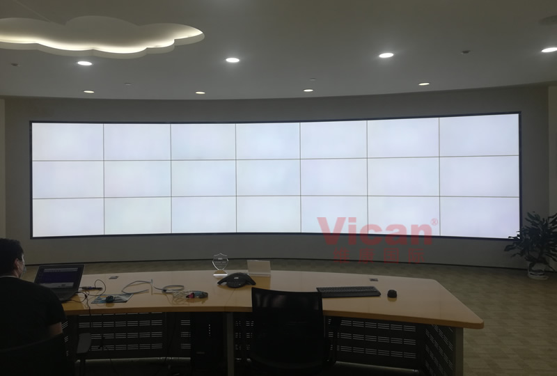 這套大屏采用3行7列、55寸液晶拼接屏,雙邊拼縫為3.5mm,主要用來視頻監(jiān)控及大數(shù)據(jù)顯示使用。