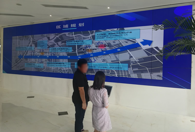 我公司為北京中關(guān)村壹號展廳提供的這套大屏,采用4行8列、55寸液晶拼接屏,雙邊拼縫為3.5mm,主要用來顯示大數(shù)據(jù)信息。大屏幕顯示高端大氣,安裝調(diào)試完后得到該用戶的一致好評。