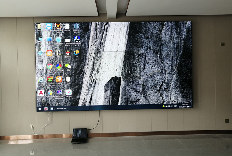 該案例中,維康國(guó)際為日照莒縣如意社區(qū)黨群服務(wù)中心提供一套會(huì)議大屏,采用3x3拼接、55寸0.88mm液晶拼接屏,超窄邊設(shè)計(jì),畫(huà)面顯示清晰亮麗,一體化顯示效果很好,如上圖所示。