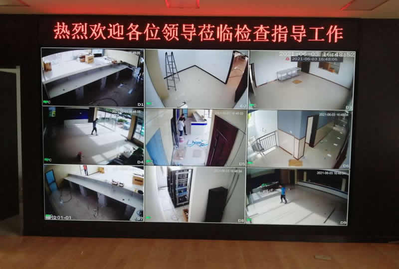 本案例中,維康國際為德州市齊河某派出所提供一套監(jiān)控拼接屏,由3x3拼接、55寸液晶拼接屏組成,如上圖所示。
