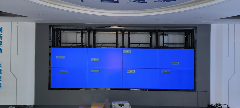 本案例中,維康國際為中建八局安圖縣某項(xiàng)目部提高一套會(huì)議室顯示大屏,采用3*4拼接、3.5mm拼縫的55寸拼接屏,壁掛式安裝,更顯美觀大氣。
