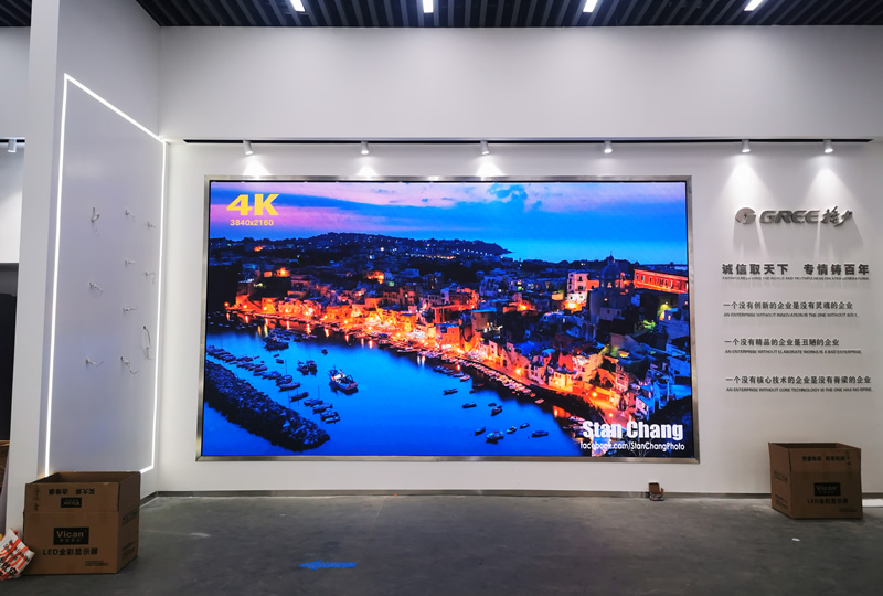 本案例中,維康國際為寧鄉(xiāng)市格力工廠提供一套大屏,采用P1.8間距的LED顯示屏,大屏幕顯示清晰、色彩豐富、一體化顯示效果好。
