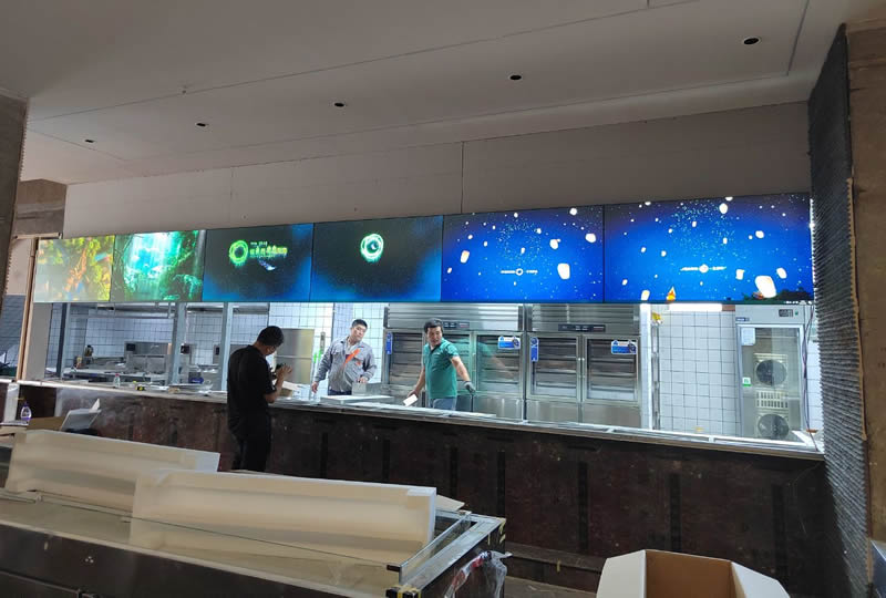 深圳市某企業(yè)食堂櫥窗提供一套顯示大屏,采用1*6拼接、55寸液晶拼接屏組成,如上圖所示,屏幕顯示清晰,視覺效果好。