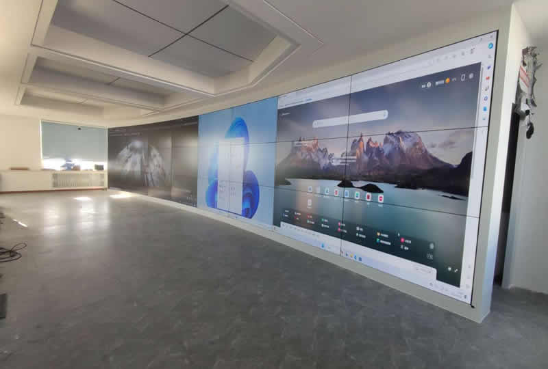 本案例中,維康國際為黑河市軍金原煤提供一套指揮中心大屏,由3x8拼接、65寸液晶拼接屏,拼縫為3.5mm,屏幕尺寸大,顯示清晰,性能穩(wěn)定。
