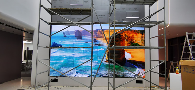 本案例中,維康國際為深圳影石創(chuàng)新公司提供一套展廳LCD大屏,由4x4拼接、55寸液晶拼接屏組成,屏體采用0.88mm窄邊LG面板,大屏幕顯示清晰,一體化效果好。