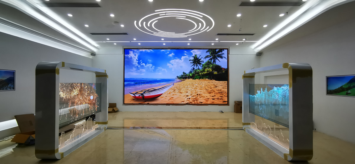 本案例中,維康國際為清遠(yuǎn)市煙草局展覽廳提供多套LED顯示屏,由P2全彩LED顯示屏和LED透明屏組成,如上圖多是,大屏幕顯示清晰,色彩豐富,視覺體驗(yàn)效果好。