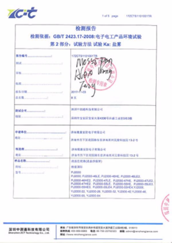 大屏鹽霧測試報告