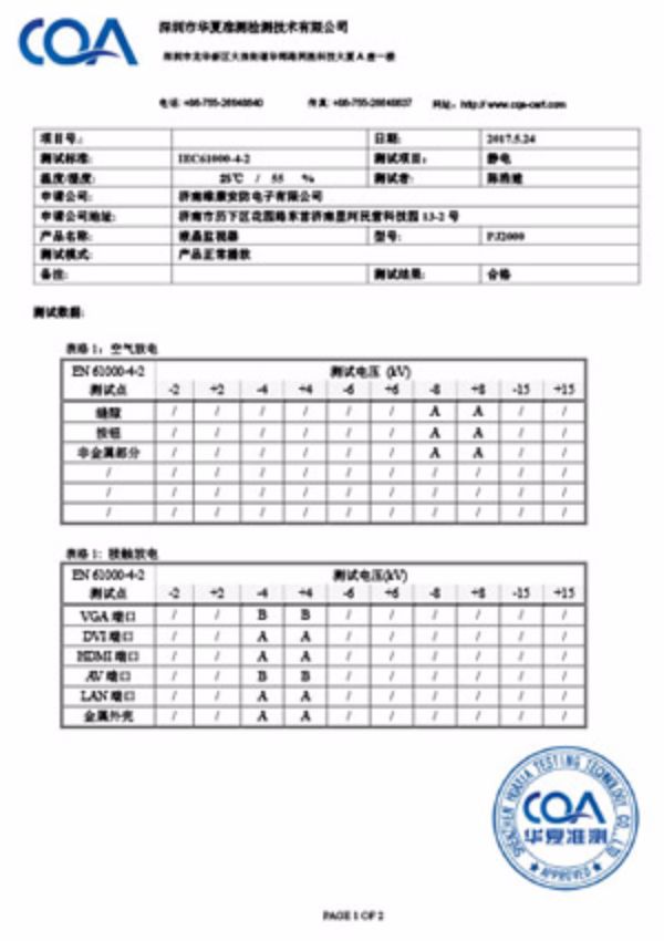 拼接屏防靜電檢測報告