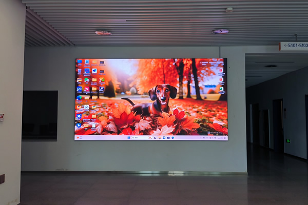 采用模塊化顯示單元(LED顯示屏 / 液晶拼接屏)構(gòu)建標(biāo)準(zhǔn)矩形陣列,常見(jiàn)的液晶拼接屏規(guī)格包括 2×2、3×3、4×4 等組合模式,而LED顯示屏的模組尺寸小,拼接更靈活。在政府會(huì)議中心、企業(yè)報(bào)告廳等場(chǎng)景中,該方案通過(guò)統(tǒng)一的邊框設(shè)計(jì)與色彩校準(zhǔn),實(shí)現(xiàn) PPT 演示、視頻播放等內(nèi)容的高清展示。其優(yōu)勢(shì)在于工程實(shí)施難度低、維護(hù)成本可控。一般情況下,LED顯示屏比較適用于以單一內(nèi)容展示為主的傳統(tǒng)會(huì)議場(chǎng)景;在異形畫(huà)面展示、多源信息分屏呈現(xiàn)時(shí)液晶拼接屏更適合。