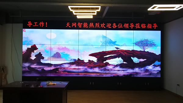 這套大屏安裝在湖南省天網(wǎng)智能科技有限公司的展廳,采用3x5拼接、55寸液晶拼接屏,雙邊拼縫為3.5mm,主要用來大數(shù)據(jù)顯示使用。