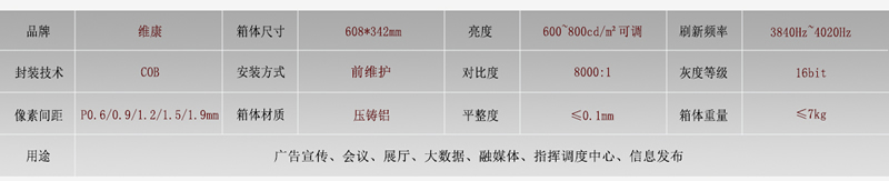 目前,維康國際目前成熟度高的COB小間距顯示屏已經(jīng)廣泛被應(yīng)用在各種大屏顯示領(lǐng)域,特別是P1.2和P0.9的產(chǎn)品在大數(shù)據(jù)顯示、會議室、指揮中心等場合有大量使用,并且取得了大量行業(yè)認(rèn)證與COB封裝技術(shù)的專利,入圍政府節(jié)能產(chǎn)品采購清單,有著完善的全國網(wǎng)點(diǎn),可以提供售前、售后等一系列的服務(wù),包括察看現(xiàn)場、設(shè)計方案、安裝調(diào)度、上門售后等。如果大家想了解更多關(guān)于COB小間距LED顯示屏相關(guān)問題,或者面臨著項(xiàng)目需求,請直接聯(lián)系我們。