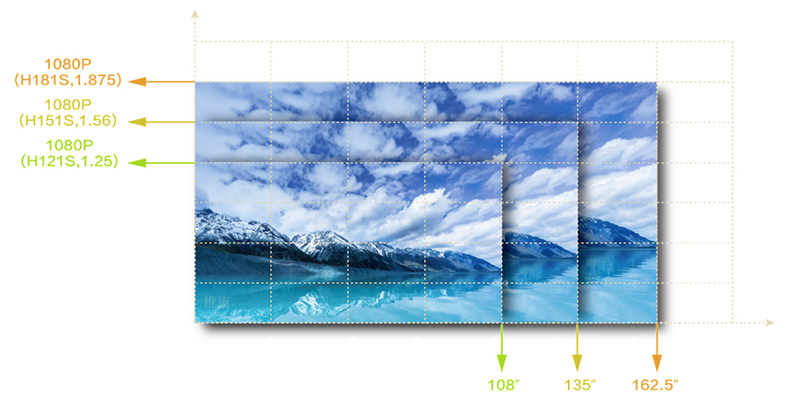 由于箱體是16:9比例,所以在拼接時(shí)只要保證等比例數(shù)量的拼接,整個LED顯示屏就不會發(fā)生變形,從而保證整體的顯示效果。如下圖,P1.53小間距LED顯示通過5*5拼接后即可達(dá)到一個1080P的分辨率效果。
